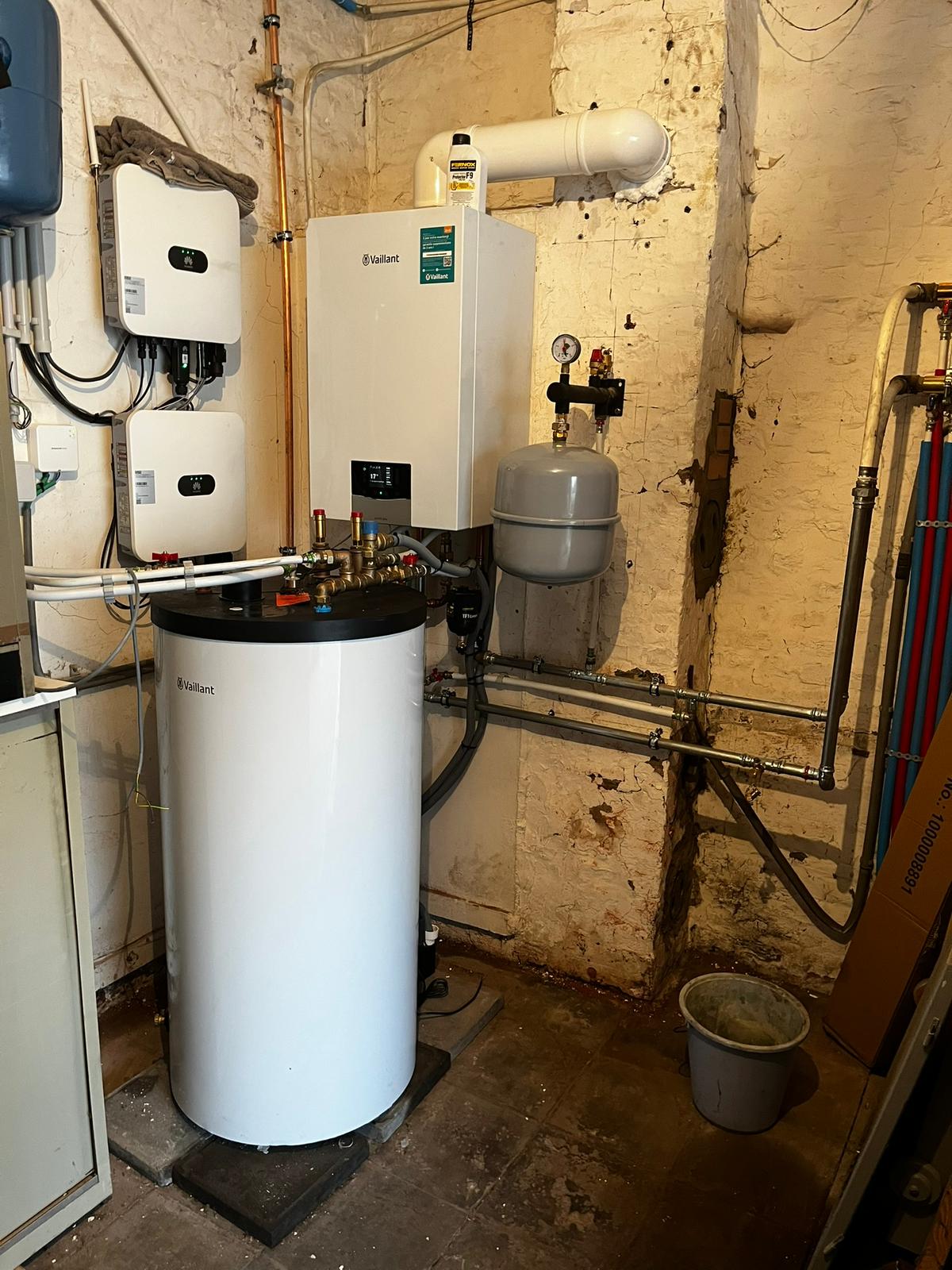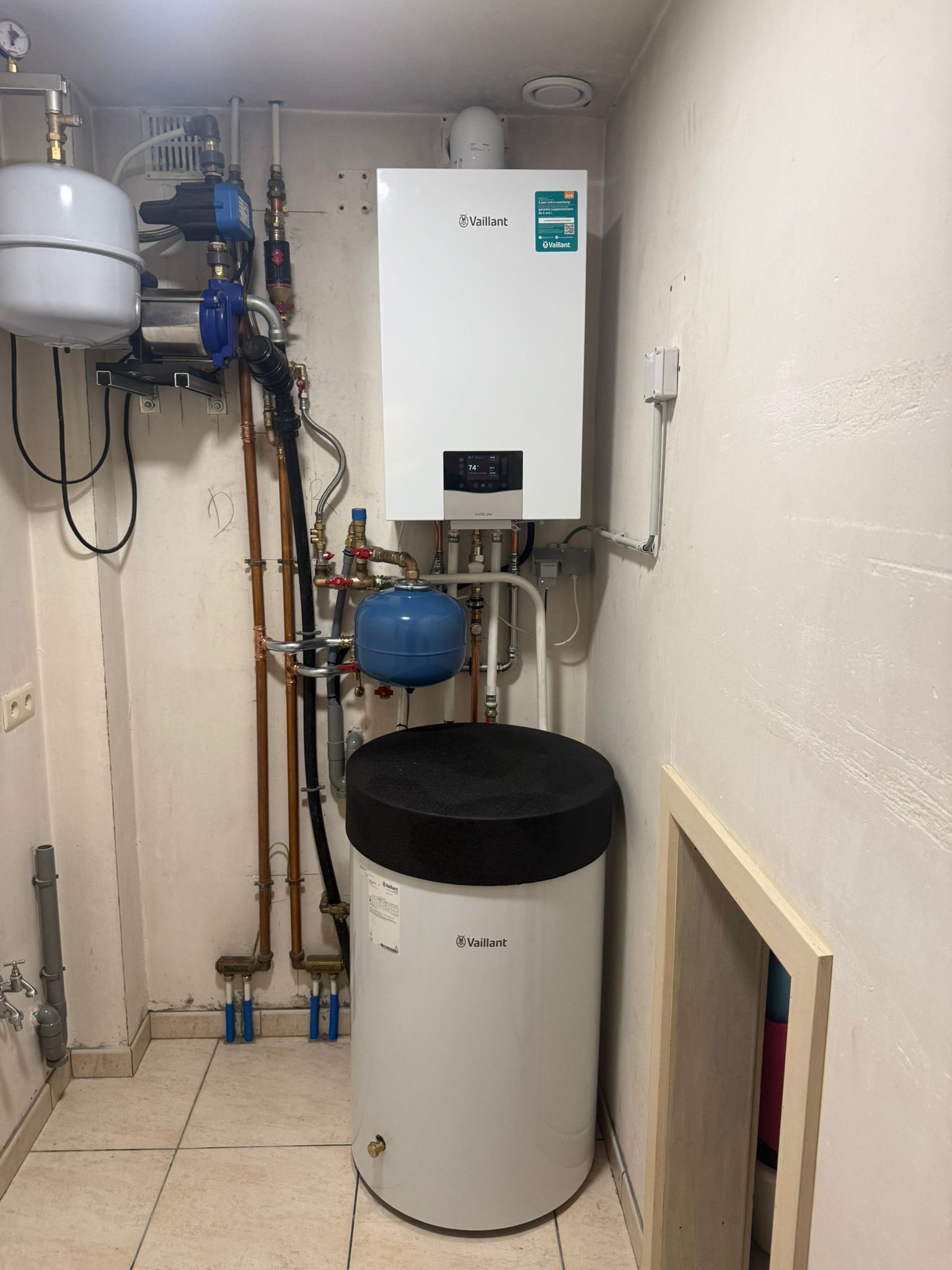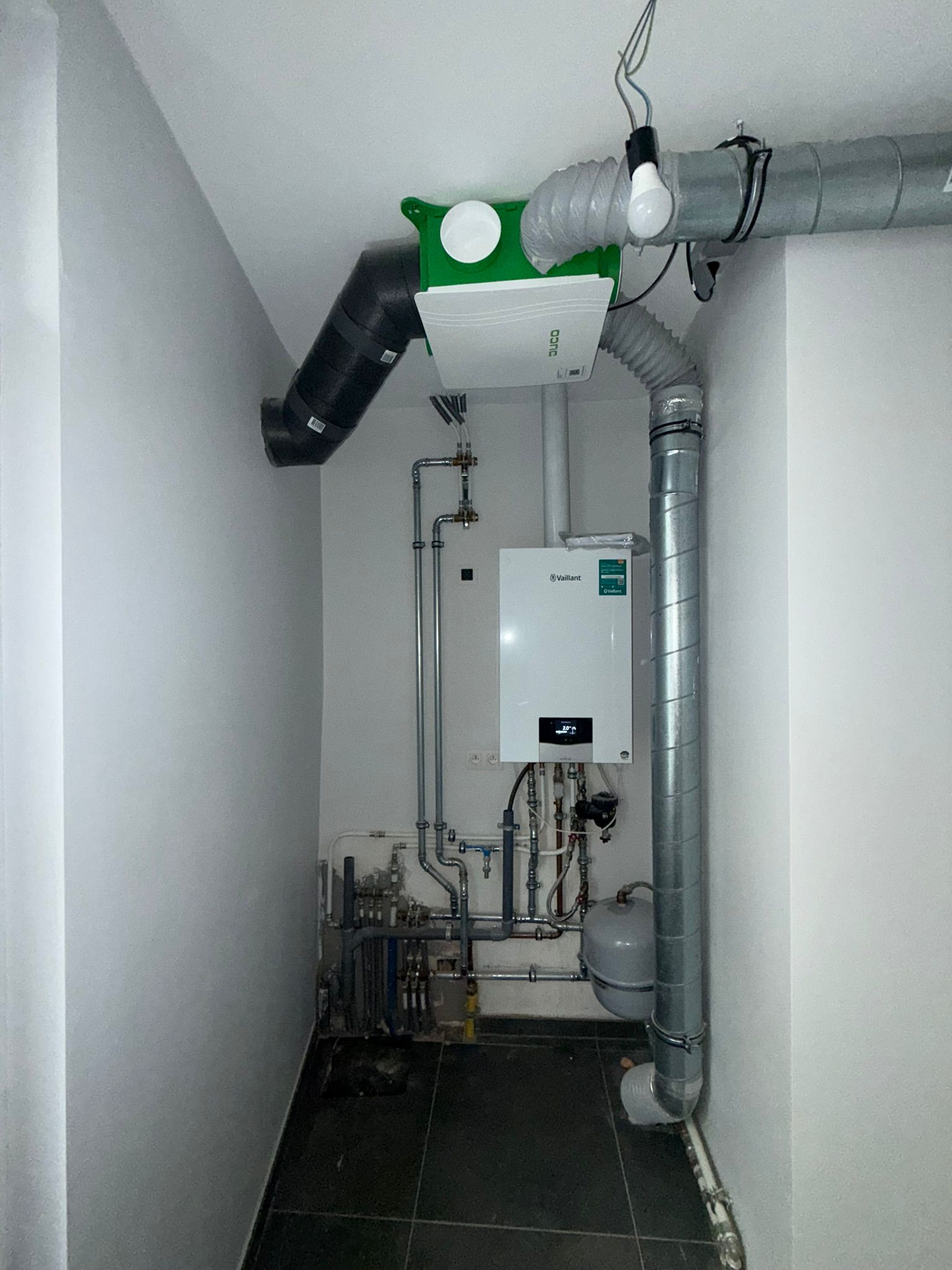 Installation d’une chaudière vaillant ecotec plus vcw32 avec production d’eau chaude et d’une ventilation Duco simple le flux.